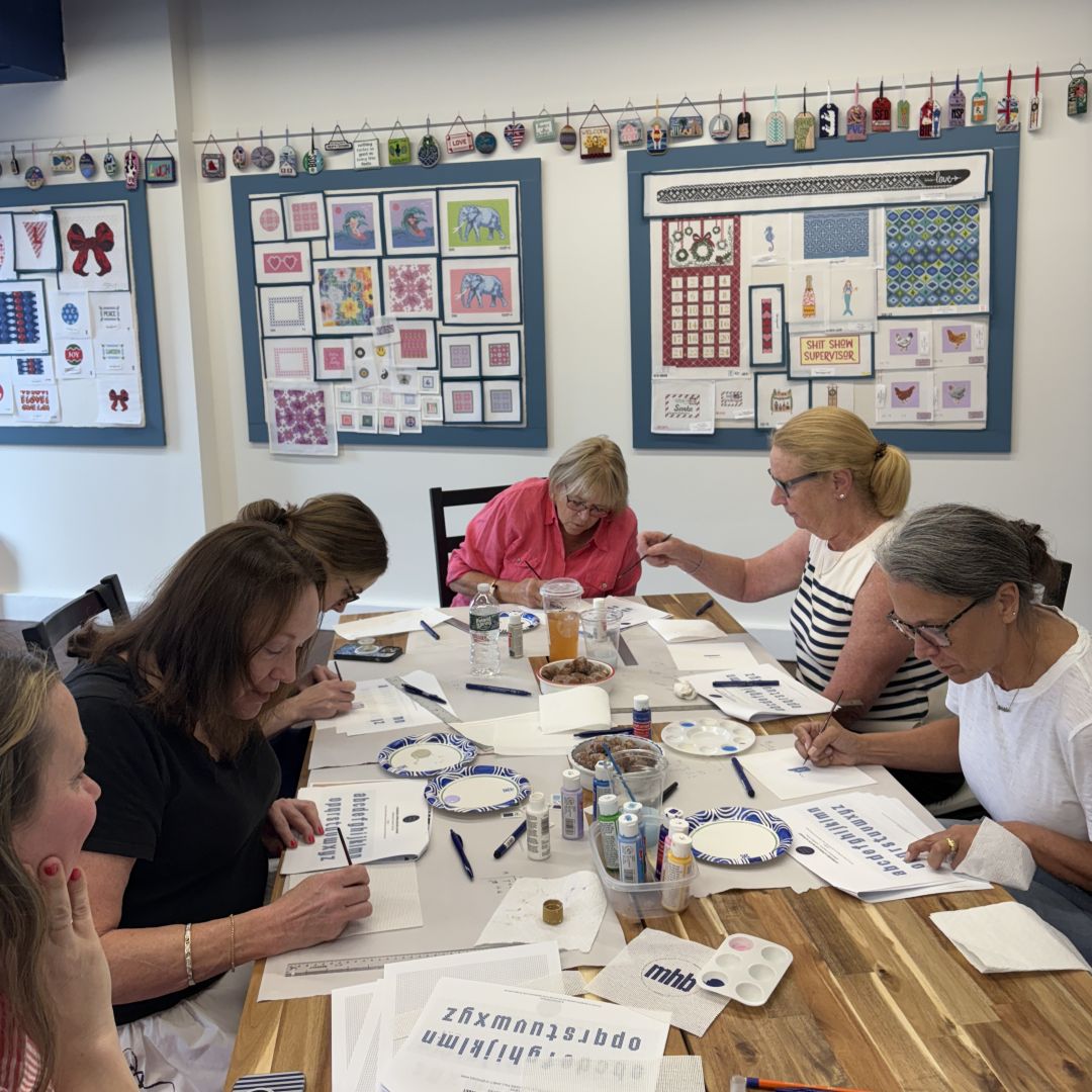 Bonus: 11/29 is Small Business Saturday! Maggie will have a mini trunk show at Island House for the day. Kit your canvas, relax and stitch your design while enjoying mimosas and cookies. Before you leave be sure to enter your name into our holiday raffle.