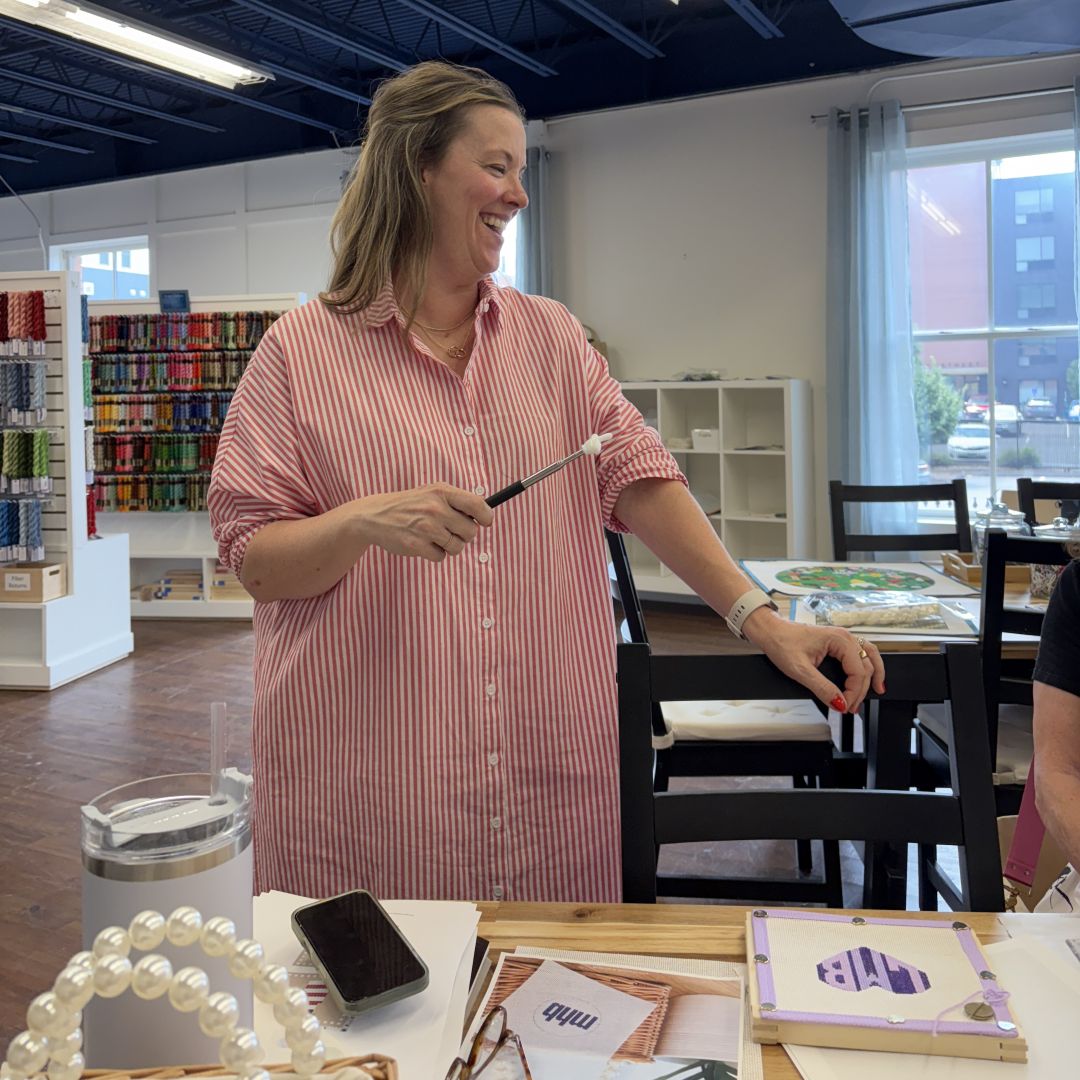Maggie is the founder and designer behind Love MHB studio, a needlepoint canvas design company based in Westport, CT. She brings her background in graphic design to her bold, modern and color forward needlepoint designs. Her approach to painting canvases is that white paint was created for a reason! Progress over perfection.